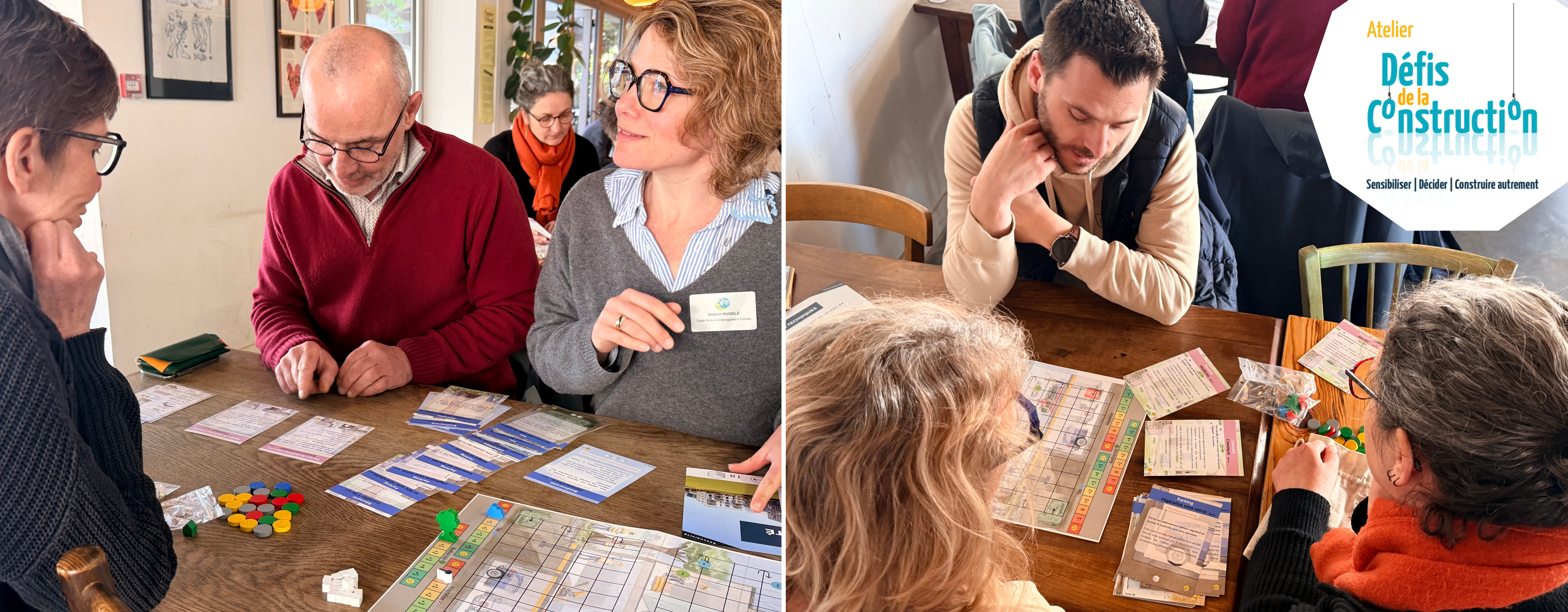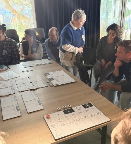Ce jeu permet de comprendre les grandes étapes de la réutilisation des matériaux dans les chantiers de déconstruction-reconstruction. Il touche du doigt les grands enjeux du réemploi lorsque les joueurs cherchent l’équilibre entre réutilisation de matériaux, valorisation de ce qui n’a pas pu être utilisé et achat de matériaux neufs.