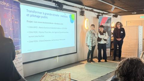 À travers la présentation des cours buissonnières de Bordeaux, en présence de l’AMO Alto Step et de la MOE Agence « Quand les arbres auront des feuilles », les participants ont découvert une démarche ambitieuse de transformation des cours d’école.