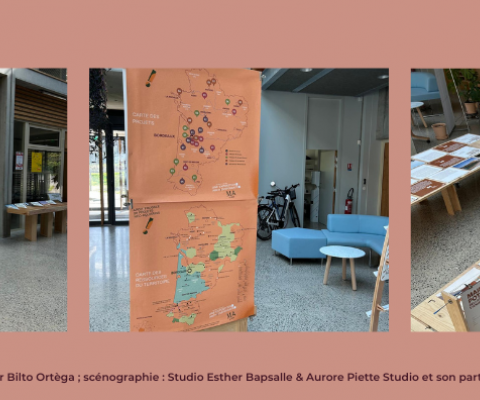 Graphisme : Atelier Bilto Ortèga ; scénographie : Studio Esther Bapsalle & Aurore Piette Studio et son partenaire Adampack.