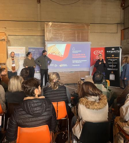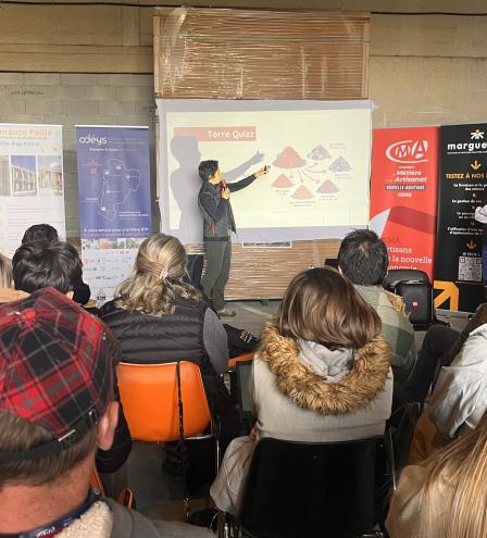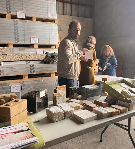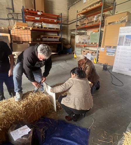 La matinée a débuté autour d’une présentation des "Aides financières pour améliorer votre mobilité" en Gironde suivi d’une présentation croisés des matériaux paille et terre crue. En fin de matinée, les participants ont pu découvrir l’entrepôt d’Arboga, fournisseurs de matériaux écologiques et lieu d'accueil de la journée.