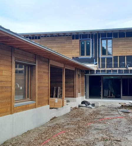 Idéalement situé en lisière de forêt, le projet ne se contente pas de s'intégrer dans son paysage ; il en utilise les ressources avec pertinence. Cette visite a permis de mettre en lumière plusieurs leviers de la construction durable :