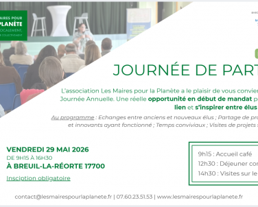 Rencontres Annuelles des Maires pour la Planète 🗓️ Vendredi 29 mai 2026, à partir de 9h15 📍 Breuil-la-Réorte (17700) LE PROGRAMME DE LA JOURNEE 9h15