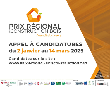 L'appel à candidatures de la 9ème édition du PRIX RÉGIONAL DE LA CONSTRUCTION BOIS en Nouvelle-Aquitaine est lancé ! CANDIDATEZ aux Trophées jusqu'au