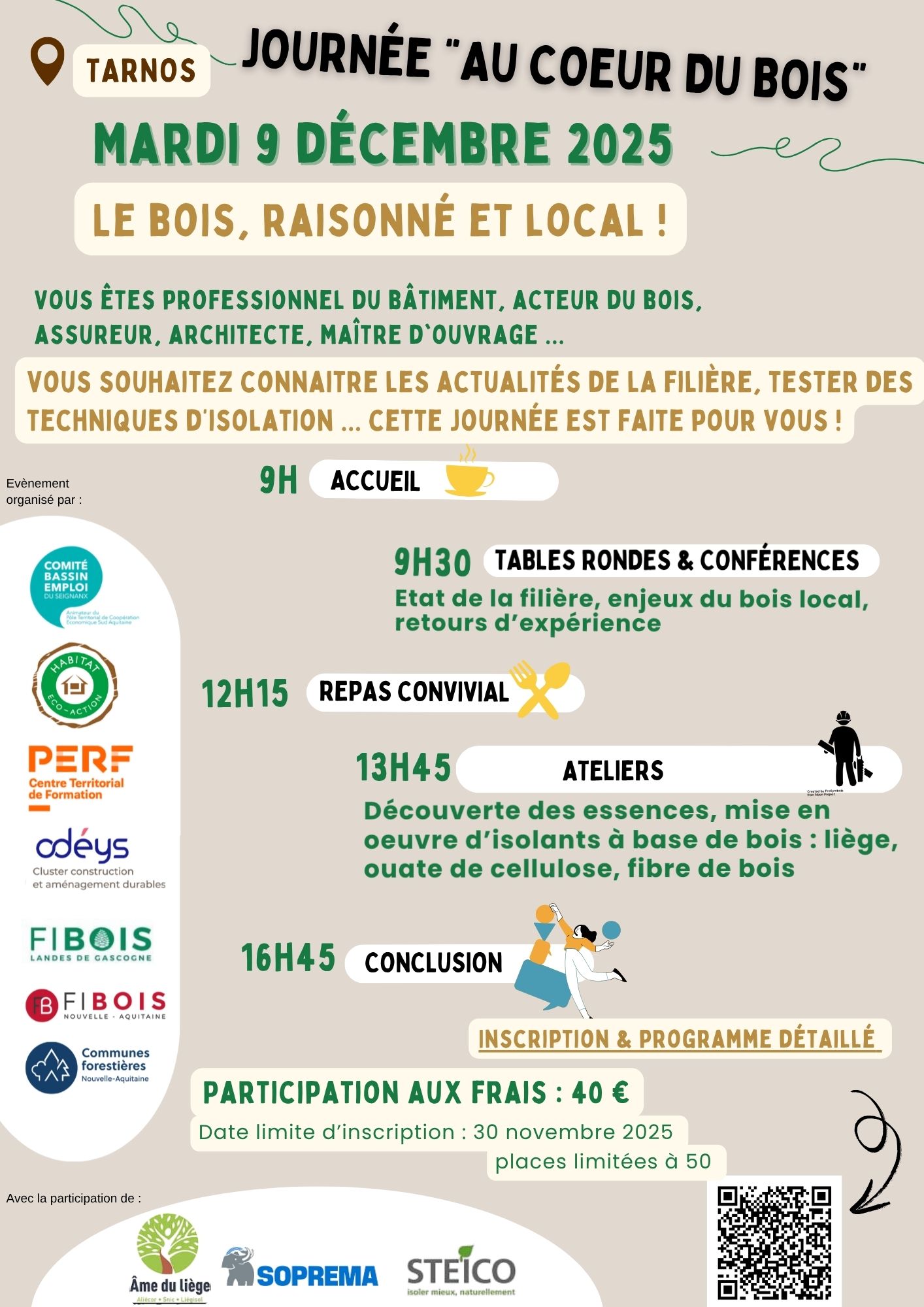 Venez plonger au cœur de la filière bois en Nouvelle-Aquitaine : comprendre ses dynamiques, débattre des enjeux du bois local, découvrir les essences régionales et expérimenter les isolants biosourcés.