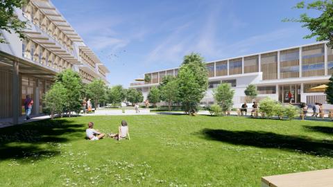 Les éléments-clés : Réhabilitation d'une friche industrielle et dépollution des sols, Désimperméabilisation, Ilôt de fraicheur, Réhabilitation, bioclimatisme, ventilation naturelle, eau.