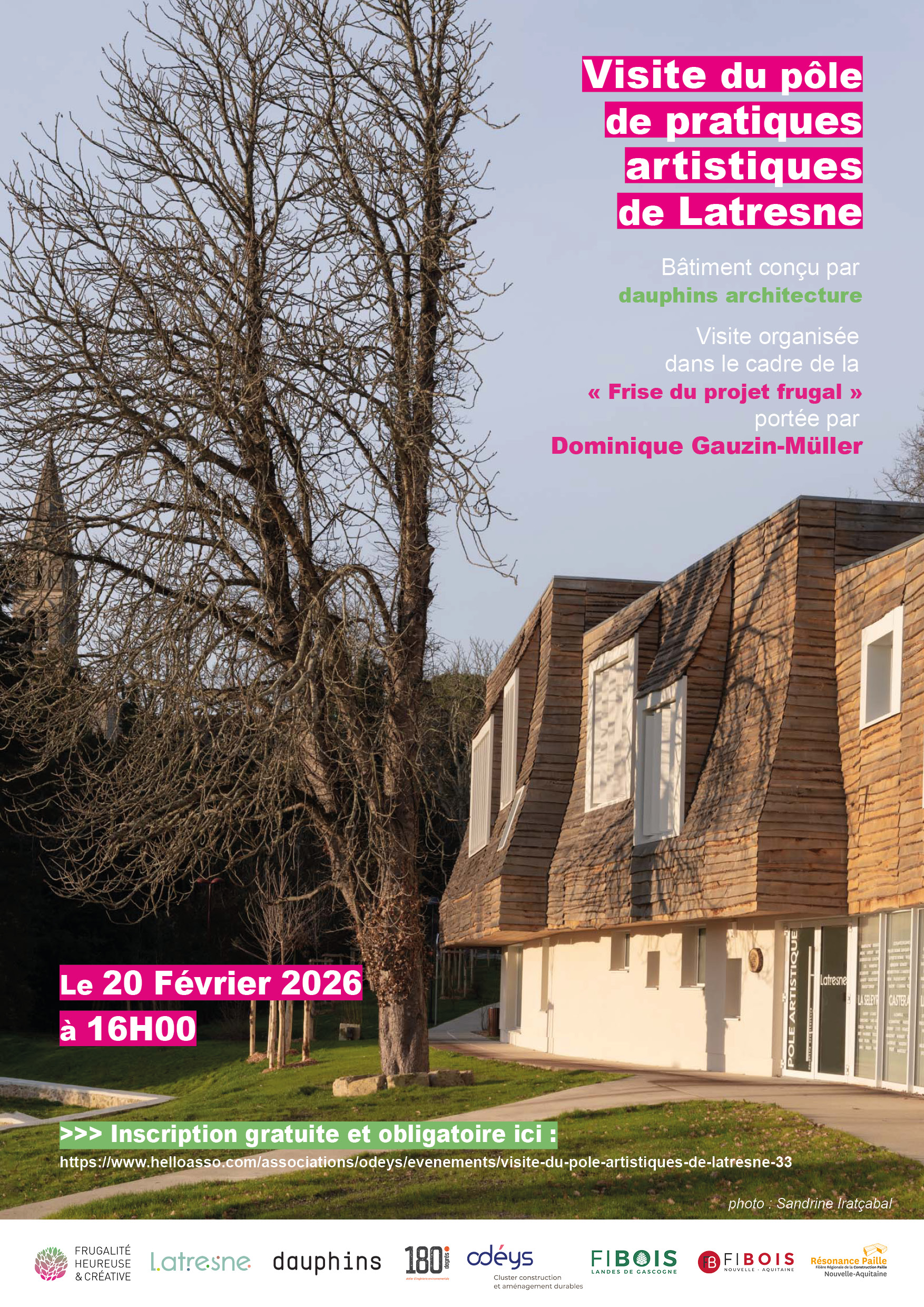 Le Mouvement pour une Frugalité heureuse et créative, Odéys, Résonnance Paille, Fibois Landes de Gascogne et Fibois Nouvelle-Aquitaine vous invitent à découvrir les coulisses du futur Pôle Artistique de Latresne. Ce projet exemplaire illustre parfaitement comment transformer un patrimoine existant pour répondre aux nouveaux usages culturels, tout en intégrant des exigences fortes en matière de durabilité.