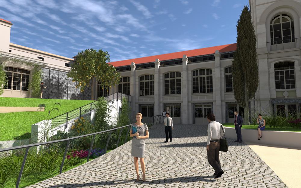 Vue du parvis nord donnant sur le hall d’accueil. Jean-Marc Beffre et Eric Daigre ©