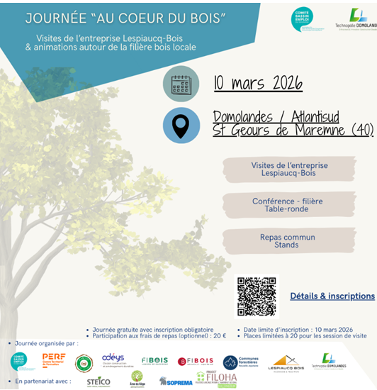 Journée co-organisée par le PTCE SA, Domolandes, Lespiaucq Bois, Fibois NA et Landes de Gascogne, URCOFOR et Odéys